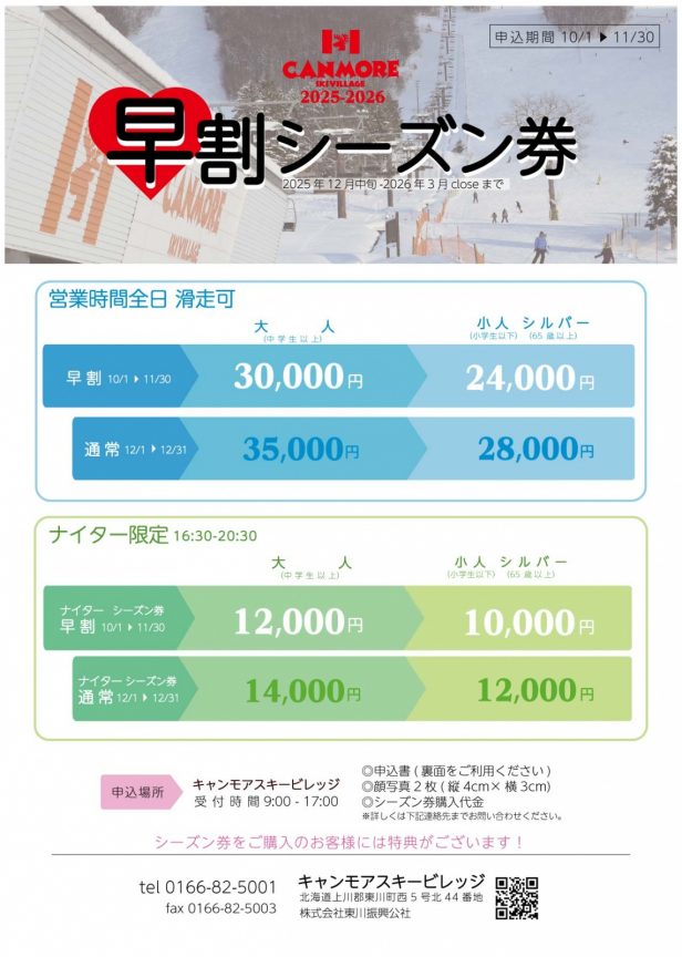 25-26早割シーズン券販売開始いたします!