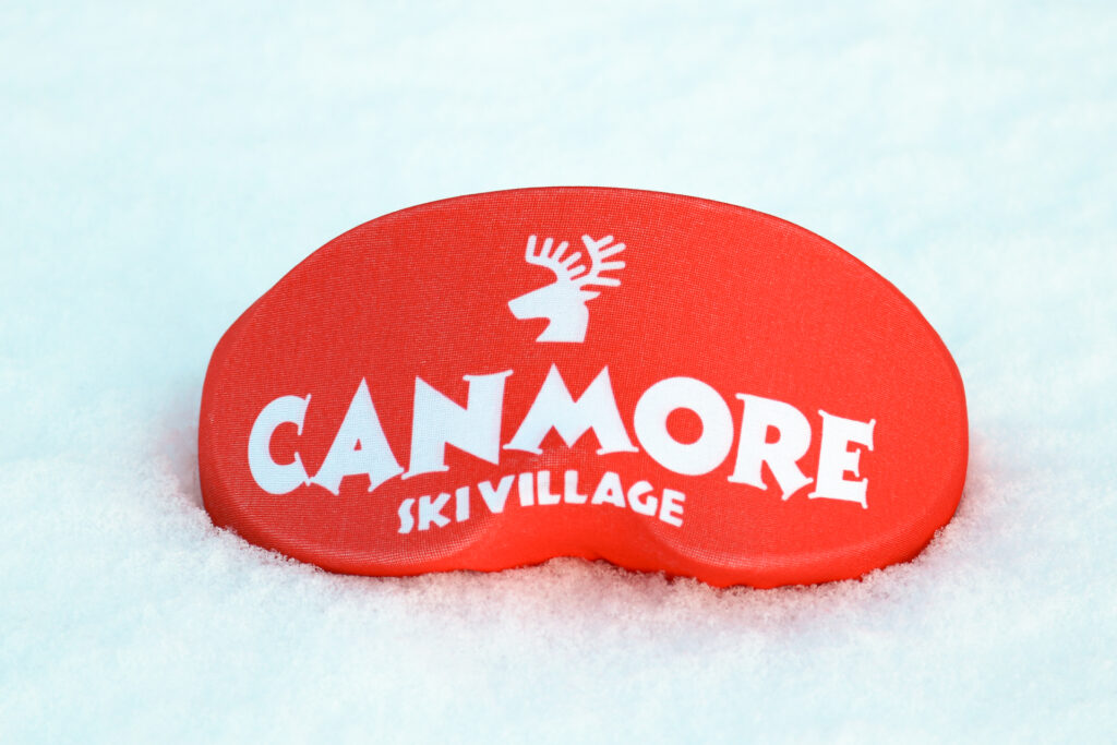 ゴーグルカバーを装着してレンズの傷・汚れを防止。キャンモアスキービレッジオリジナルカバーで目立つこと間違いなし!